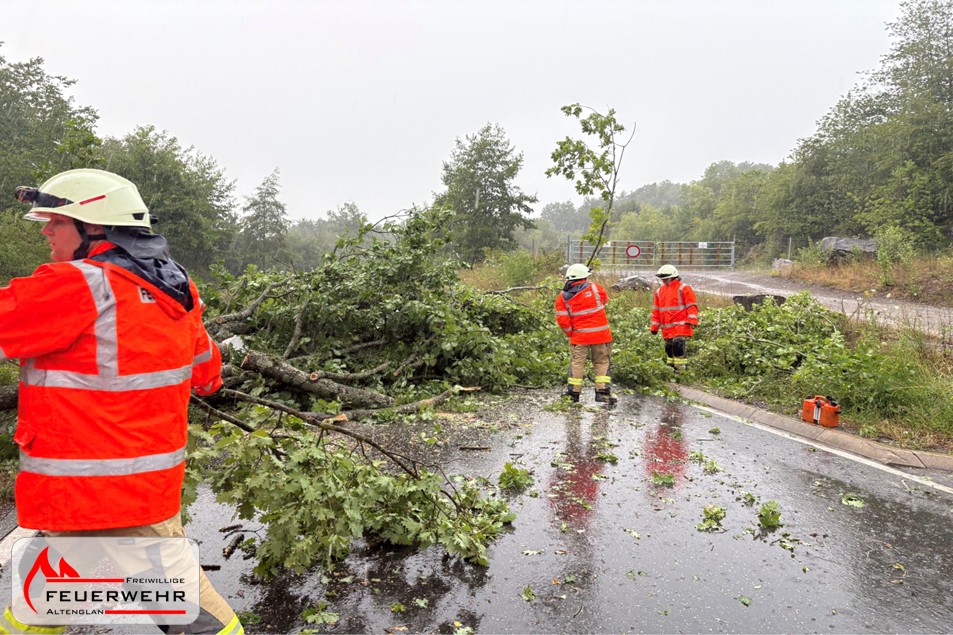 Am 20.07.2025 wurde die Feuerwehr Altenglan und die FEZ Kusel-Altenglan zu einem umgestürzten Baum alarmiert. Beim Eintreffen an der Einsatzstelle stellte sich heraus, dass der Baum die komplette Fahrbahn versperrte, sodass ein Durchkommen nicht mehr möglich war.